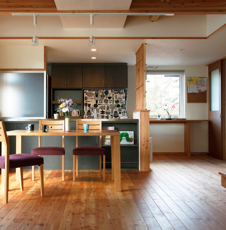 小松建設のしごと 2階建て HOME 小松建設のしごと おかえりはうすⅡ おかえりはうすⅡ 2階建て まちなか暮らし 子育て世代 お客様名K様邸家族構成4人建築面積72.45㎡(21.87坪)延床面積121.72㎡(36.74坪)市町村伊達市完成年月10月 2014年