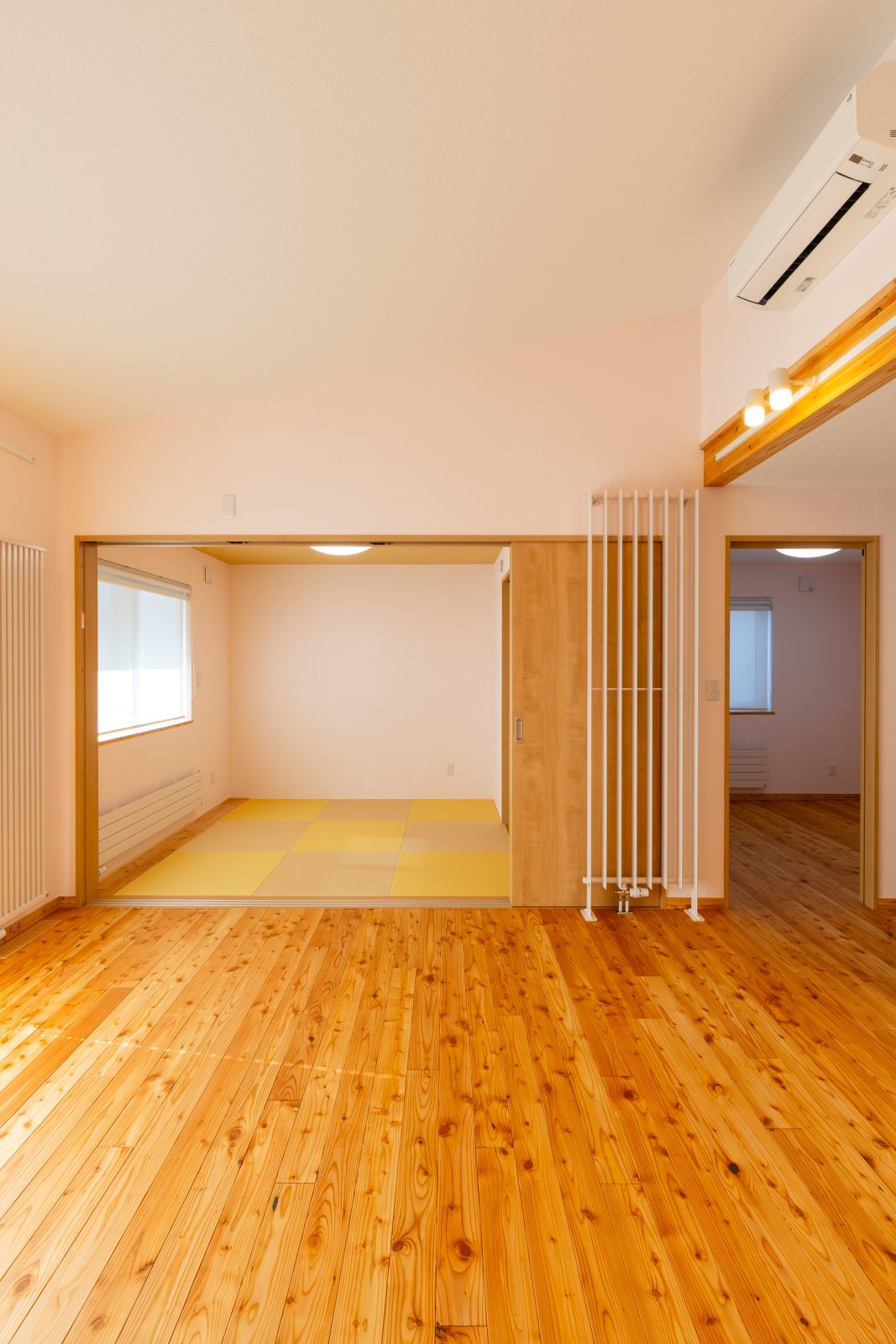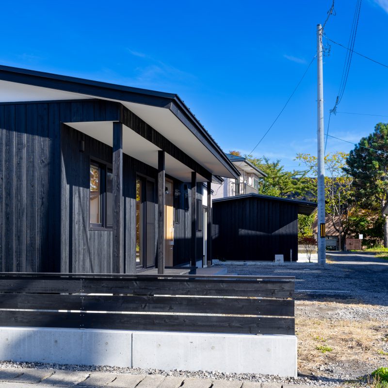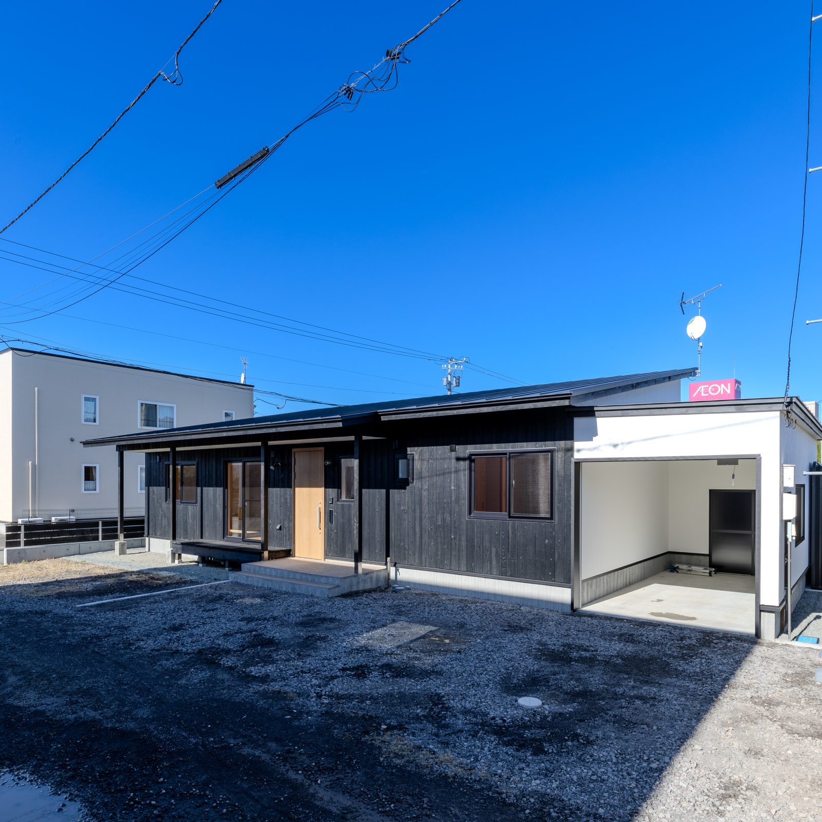 小松建設のしごと HIRAYA HOME 小松建設のしごと 和を楽しむ平屋暮らし 和を楽しむ平屋暮らし HIRAYA まちなか暮らし 吹抜け 和モダン 木塀/木板 ビルトインガレージ お客様名H様邸建築面積106.82㎡(32坪)延床面積98.54㎡(29坪)市町村伊達市完成年月2024年11月