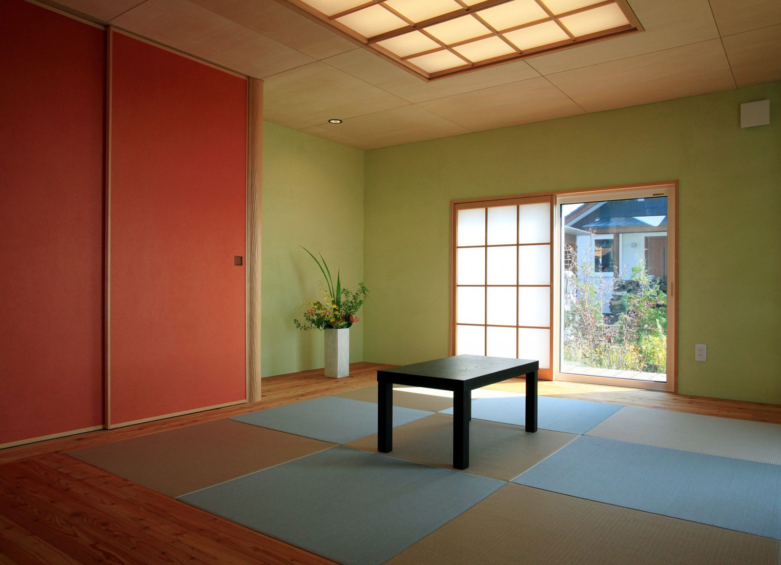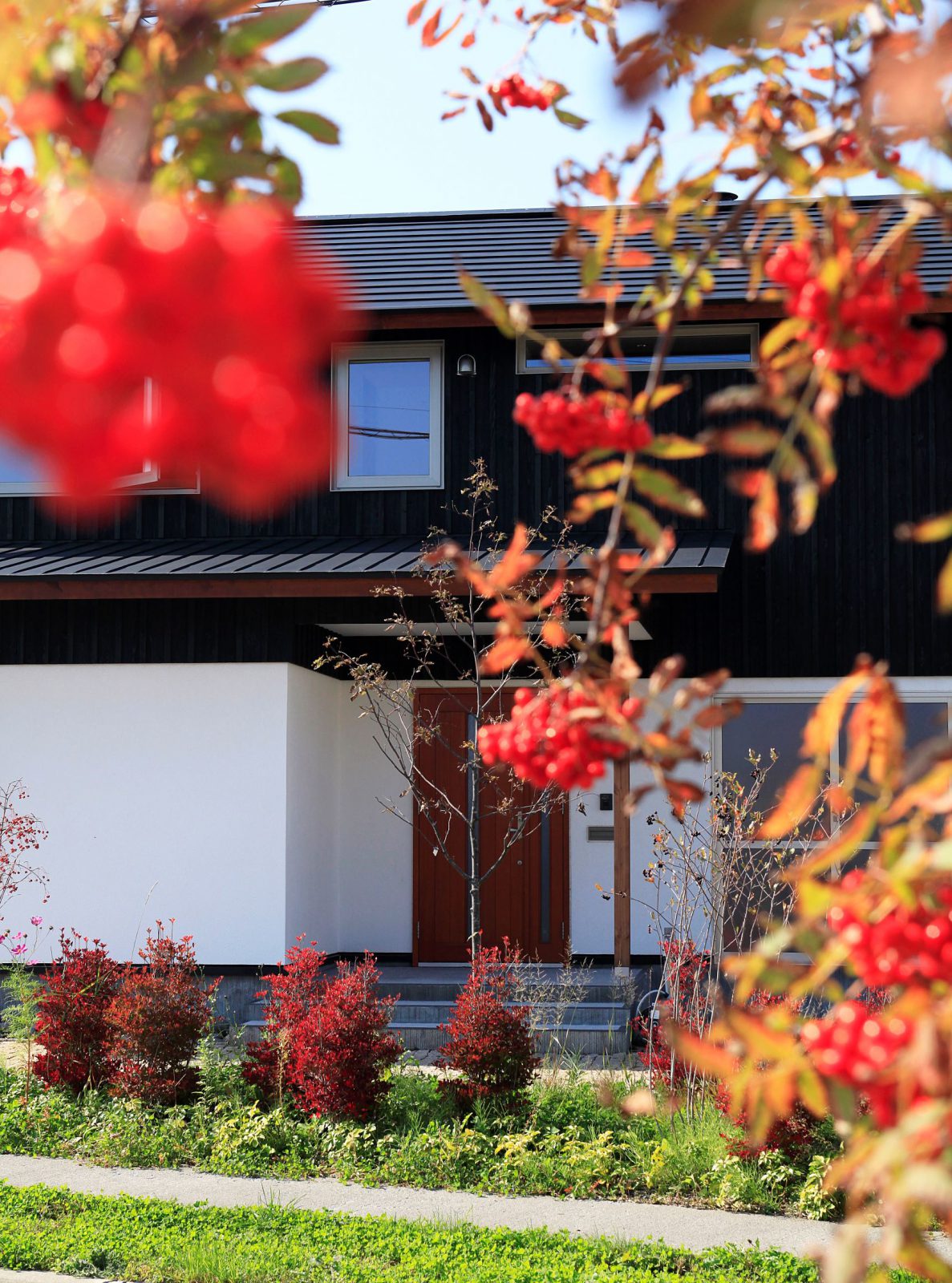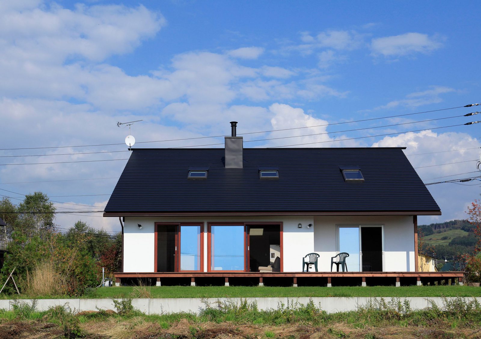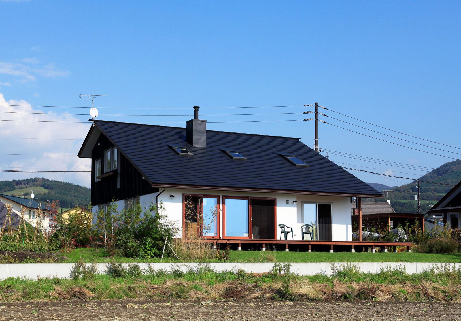 小松建設のしごと 2階建て HOME 小松建設のしごと 春を彩る庭を楽しむ家 春を彩る庭を楽しむ家 2階建て 薪ストーブ 造作キッチン さとやま暮らし 吹抜け 和モダン 景観を楽しむ ウッドデッキ 木製サッシ 市町村伊達市完成年月2010年