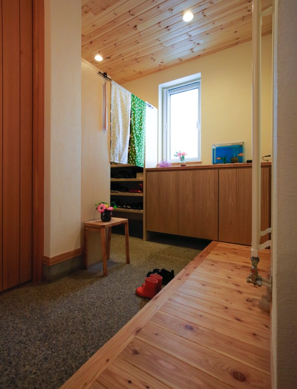 小松建設のしごと 2階建て HOME 小松建設のしごと 縁側と庇のある家 縁側と庇のある家 2階建て 隙間スペース 造作洗面 造作キッチン 子育て世代 ロフト 吹抜け 広々玄関 和モダン ウッドデッキ 木塀/木板 木製サッシ オーナー様の声 お客様名S様邸家族構成4人建築面積81.5㎡ (24.65坪)延床面積119㎡ (35.92坪)市町村伊達市完成年月2017年 3月 オーナー様の声 インテリアや雑貨が好きなので、「見せる」と「隠す」を兼ね備えた収納棚を作っていただきました。「ほっと落ち着く家」がコンセプトですが、中でも和室は特に落ち着く場所。子どもたちも2階の寝室よりも和室で寝たがります。 (伊達市 S様)