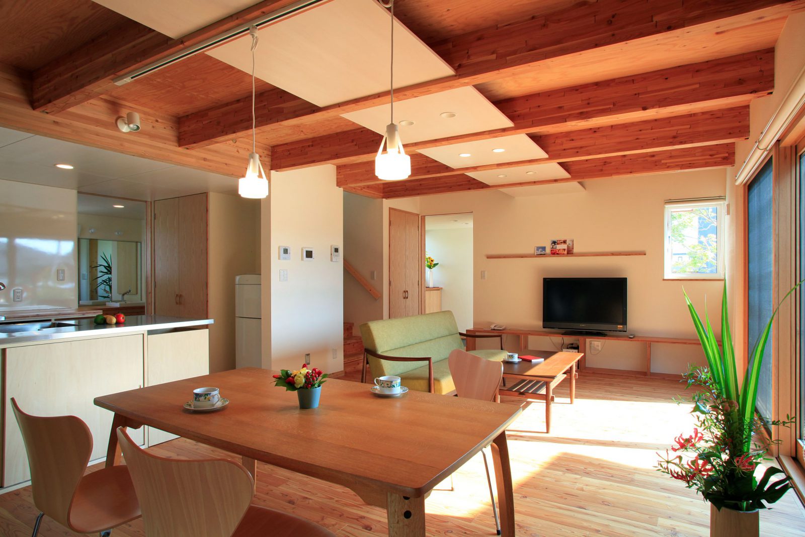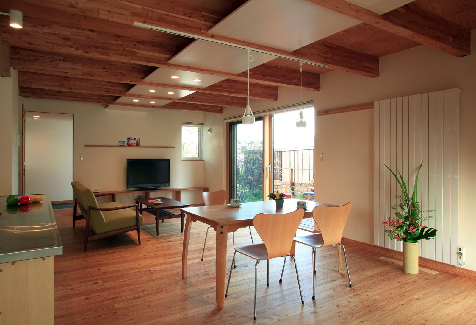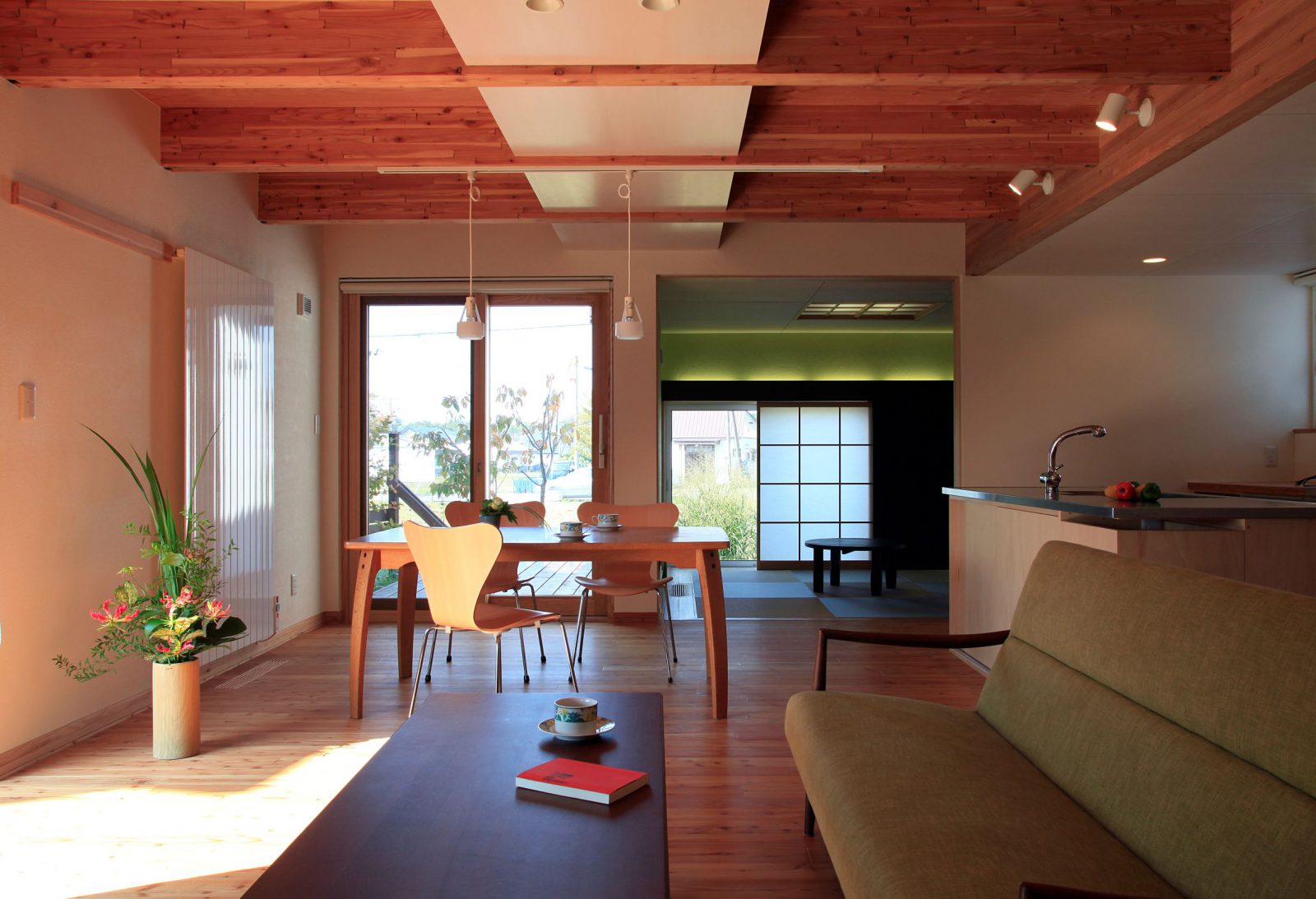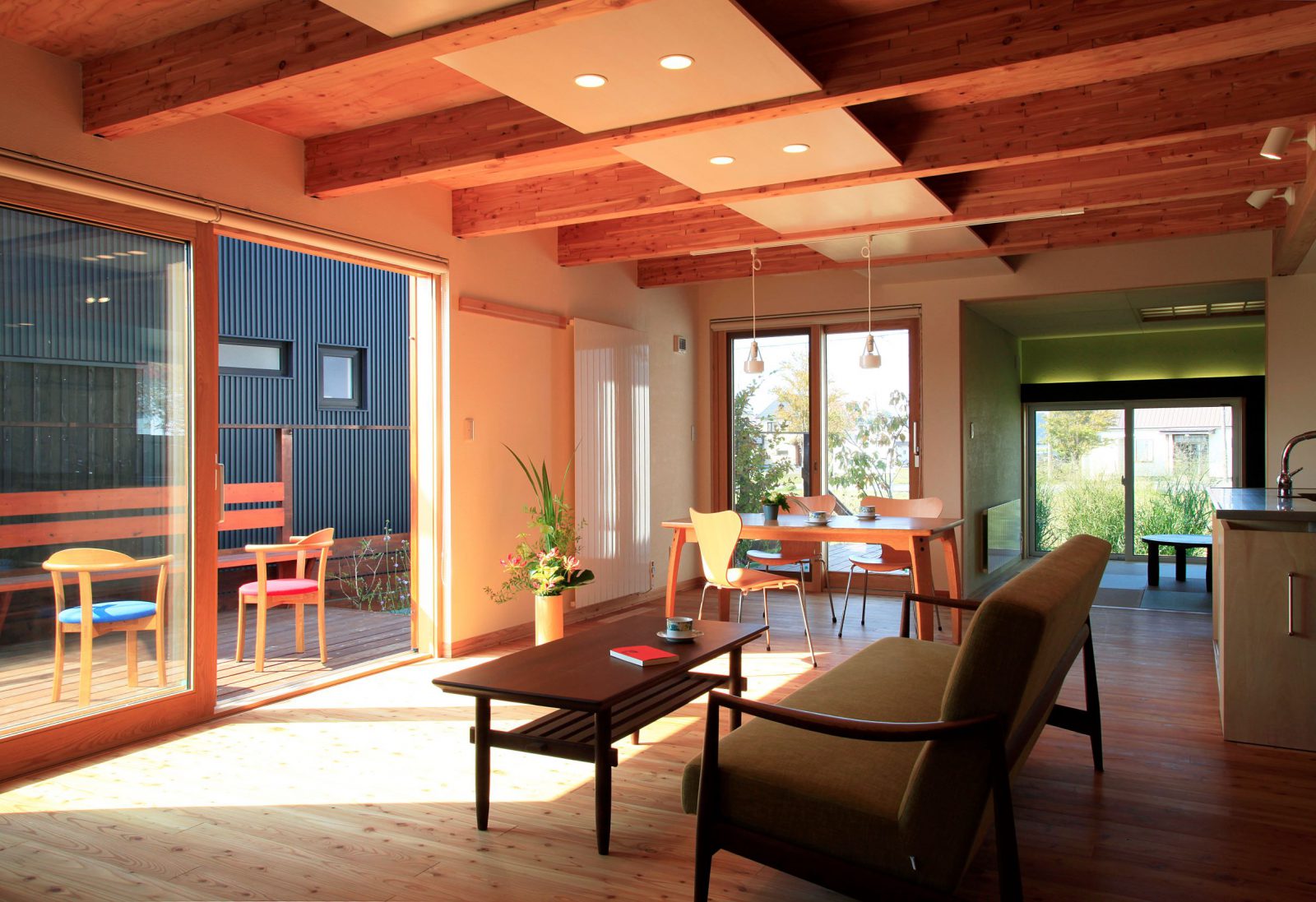 造作キッチン まちなか暮らし 和モダン お庭を楽しむ ウッドデッキ 木塀/木板 木製サッシ