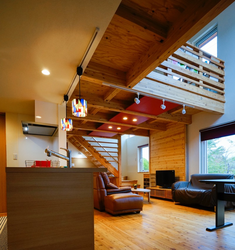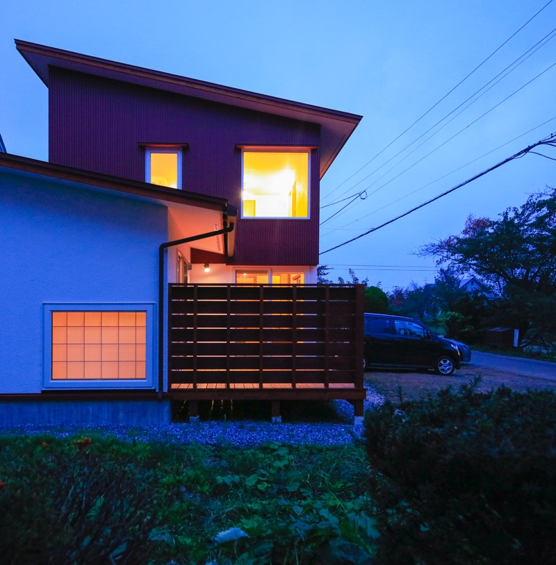 小松建設のしごと 2階建て HOME 小松建設のしごと 里山に抱かれる緑豊かな、町中くらし 里山に抱かれる緑豊かな、町中くらし 2階建て まちなか暮らし 子育て世代 吹抜け 和モダン 景観を楽しむ ウッドデッキ 木塀/木板 グラフテクト お客様名I様邸家族構成3人建築面積63.34㎡ (19.16坪延床面積107.55㎡ (32.46坪)市町村伊達市完成年月2017年 7月